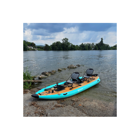 Kayak tándem a pedales para río y lago – ligero, estable y fácil de transportar